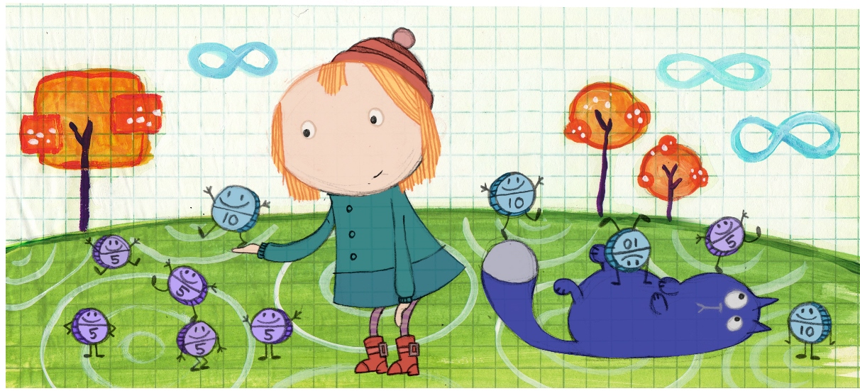 Mais informações: Contar, Dividir, repartir, multiplicar, somar, subtrair – Peg consegue fazer tudo isso de uma forma natural e divertida, sempre com a ajuda de seu gato falante e de seus amigos. Em cada episódio, Peg e seu gato estão em uma situação fantástica: pode ser uma ilha tropical deserta, uma arca cheia de animais navegando em alto mar, um planeta de outra galáxia, ou o próprio quarto de Peg. O que todos esses cenários têm em comum: eles são feitos em um fundo especial para desenhos matemáticos, cheio de rabiscos com símbolos e equações. Peg constantemente se depara com situações cotidianas que pedem uma solução matemática. Ela pode a qualquer momento desenhar gráficos, escrever números e ilustrar os problemas de forma que todos consigam entender a maneira mais justa de resolver as questões que surgem em cada episódio. Para Peg e seus amigos, não existem problemas acadêmicos – os obstáculos, personagens e desafios são elementos de situações reais, com as quais as crianças em idade pré-escolar se identificam. Moedas, cartas, frutas e animais se transformam em números e ajudam os pequenos a identificarem quantidades e operações. Peg é uma garota que gosta de organizar e planejar as coisas. Ela provavelmente não sabe disso, mas tem um raciocínio cartesiano e aborda os problemas que qualquer crianças em idade pré-escolar enfrenta a partir de uma perspectiva objetiva. Peg é também muito alegre: adora tocar o ukelele e dançar com seus amigos. Quando a solução parece distante, ela não hesita em pedir ajuda para Ramone, seu amigo mais velho. O gato é o elemento cômico e surpreendente da trama: ele é meio atrapalhado, desastrado, mas sempre aparece com uma dica que ajuda Peg a resolver os desafios. Pode ser uma forma geométrica que ninguém conhece ou um comentário aparentemente sem sentido que esconde a solução. Toda vez que Peg encontra um “beco sem saída” em seus problemas, o gato a ajuda a se acalmar e a lidar com a frustração com um receita simples: uma contagem regressiva de cinco a zero. Muita música e humor servem de ferramenta para introduzir os fundamentos matemáticos e transportar conceitos que parecem abstratos para a realidade das crianças.