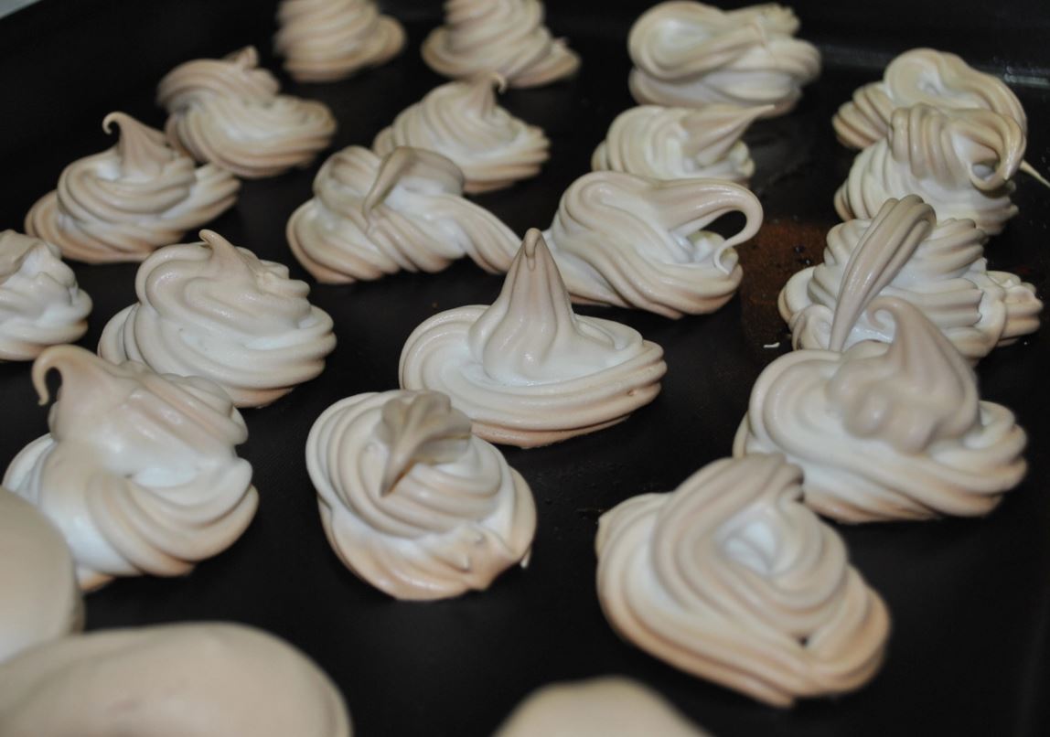 4- Coloque a clara em em uma desses apetrechos de confeitar bolo com biquinhos sabe….Se não tiver não tem problemas.. pode usar a colher mesmo ou um saquinho plástico com um furinho na ponta, assim você poderá improvisar uma “bisnaga de confeiteiro”.