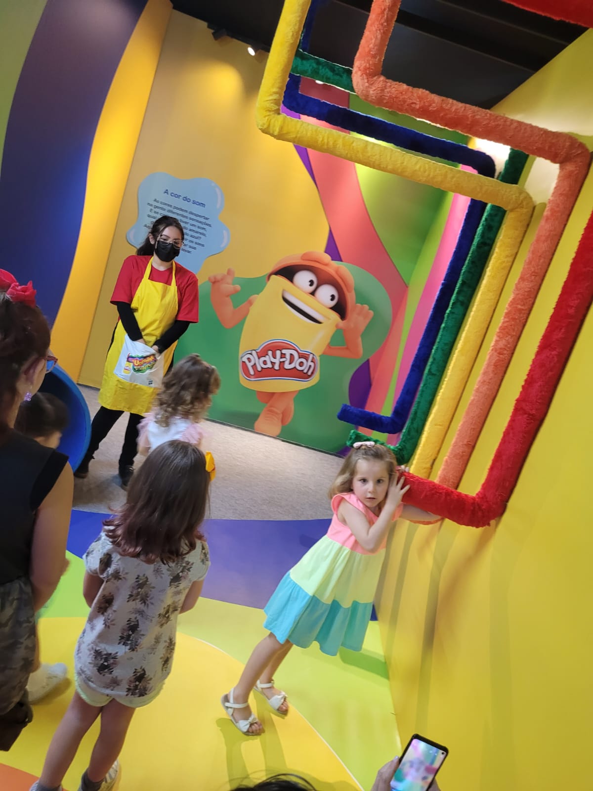 6 – Mundo doce – Este quarto é inspirado em comidas divertidas feitas com massinha de modelar Play-Doh. Um lugar cheio de atividades que despertam a imaginação. No jogo Forma Fruta, as crianças devem ficar na posição indicada na tela para passar pelo meio das frutas. Em Donuts Mania, um jogo de realidade aumentada, os visitantes devem coletar rosquinhas virtuais para ganhar pontos. No desafio Monte o seu bolinho, as crianças devem repetir a ordem dos ingredientes que aparecem na tela.