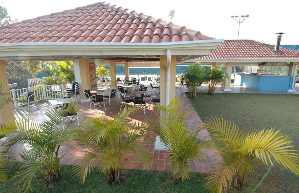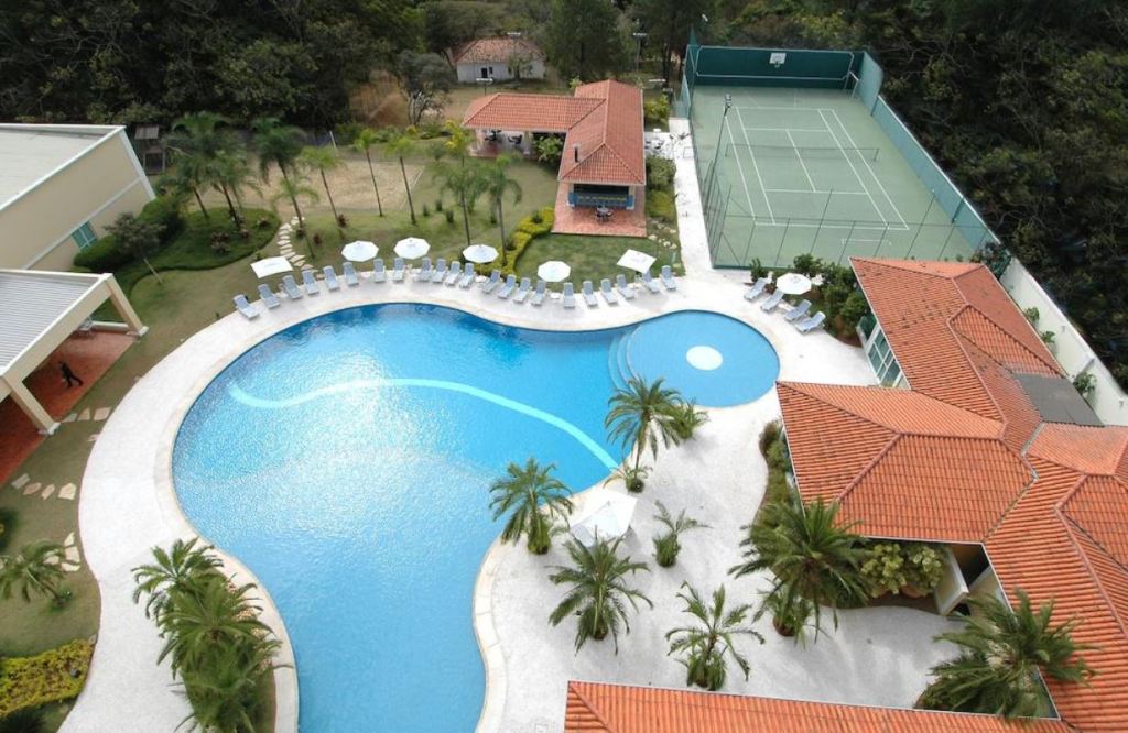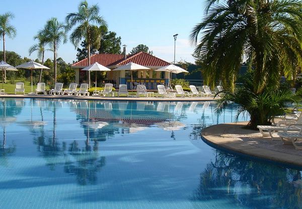 Além das brincadeiras, os filhos contam com toda a infraestrutura ao ar livre do Hotel, com ampla área de lazer com piscina, quadras poliesportivas, campo de futebol gramado.