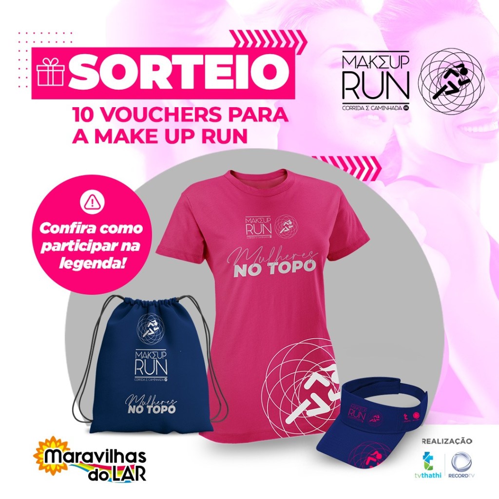 A MAKEUP RUN é uma realização da Tv Thathi evento de corrida de rua e caminhada na distância de 6 Km